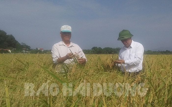 Sáng 7.11, Phòng Kinh tế thị xã Kinh Môn tổ chức hội thảo đầu bờ đánh giá hiệu quả sử dụng phân bón hữu cơ Endophyte L1 và Bioplant Flora trong gieo cấy lúa nếp cái hoa vàng.