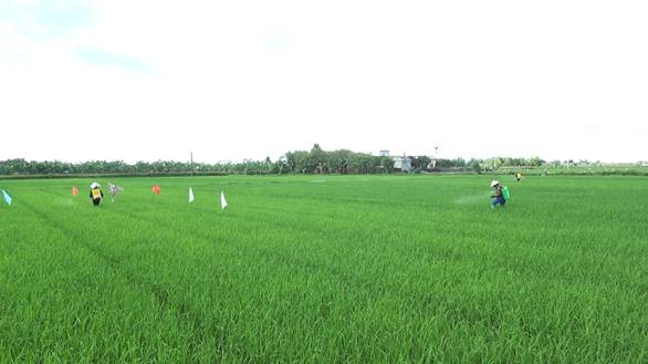(Mô hình sử dụng phân bón sinh học công nghệ nano Vua-Endophyte được trình diễn trên diện tích 2ha tại cánh đồng của thôn Đông Thổ xã Lê Lợi)